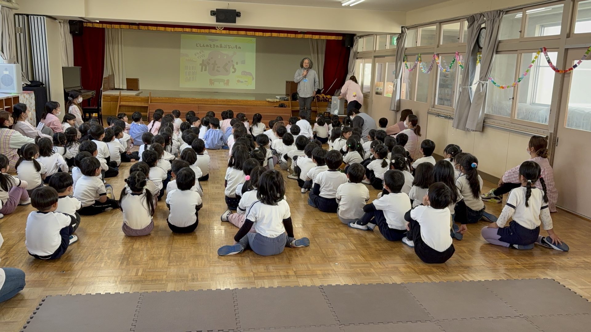 いちばん大切な「命」を守るために🫨 2026 1/14 2026年1月14日 今日は、防災について全園児で学びました✨ 地震を想定した活動を通して、年長児・年中児は地震体験にも参加しました✨ 実際に揺れを体験しながら、身を守るための「カエルポーズ」「トカゲポーズ」を学び、いざという時に自分の命を守る行動について、考える大切な時間になりました😀 講師の先生のお話を聞き、防災意識を少しずつ育んでいきます✨ お家でも、お話を聞いてみてくださいね✨ 園生活に慣れてきた満三歳児クラス🐣 🎭✨お遊戯会に向けて✨🎭