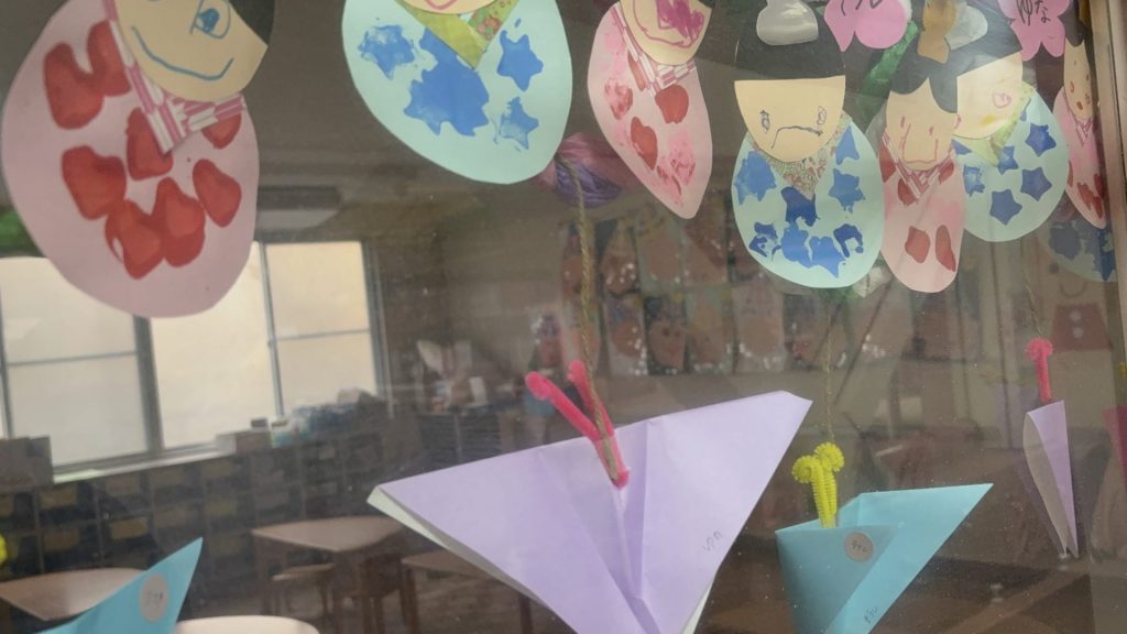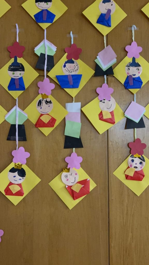 幼稚園のお部屋には、ひなまつり製作が飾ってありました✨