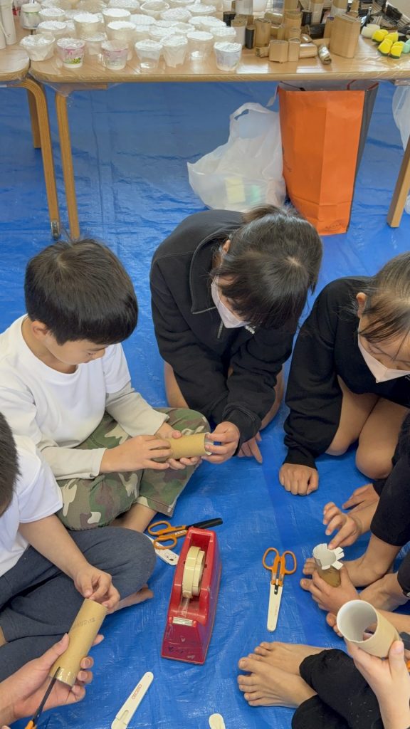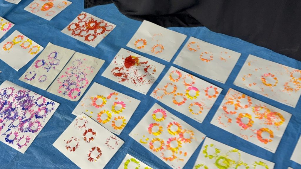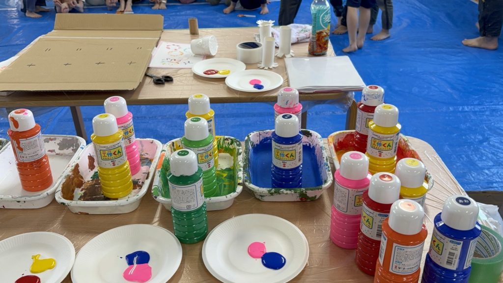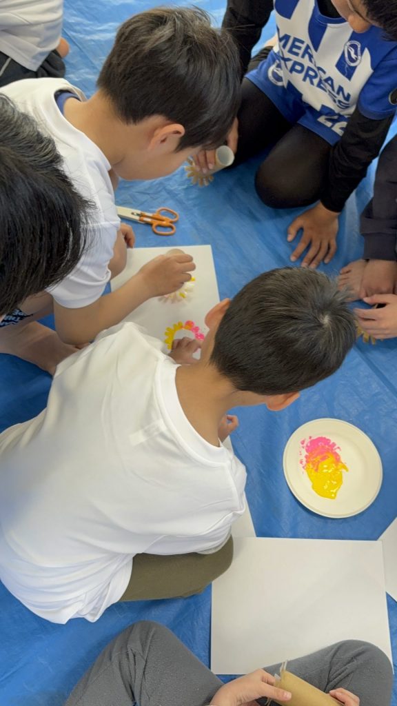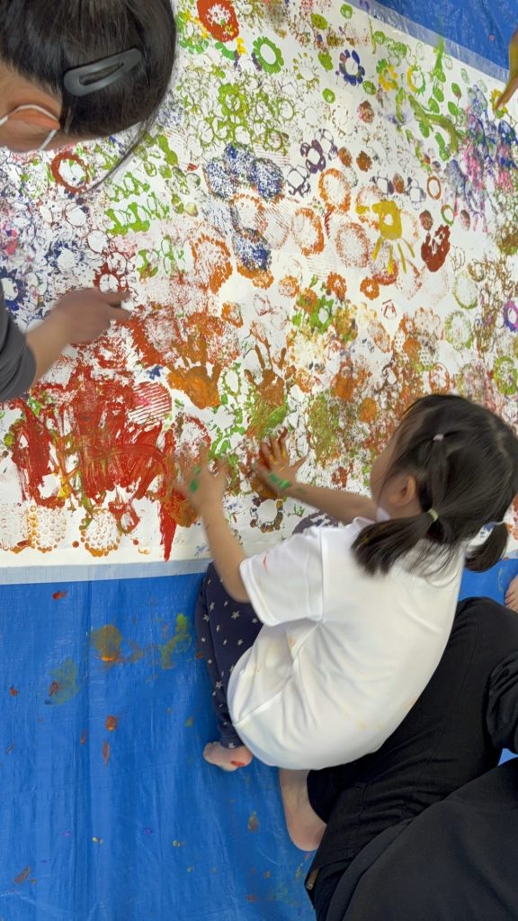 身近な素材を使ってスタンプを作ったり、大きなキャンパスにみんなで思い思いの色を重ねたり…✨